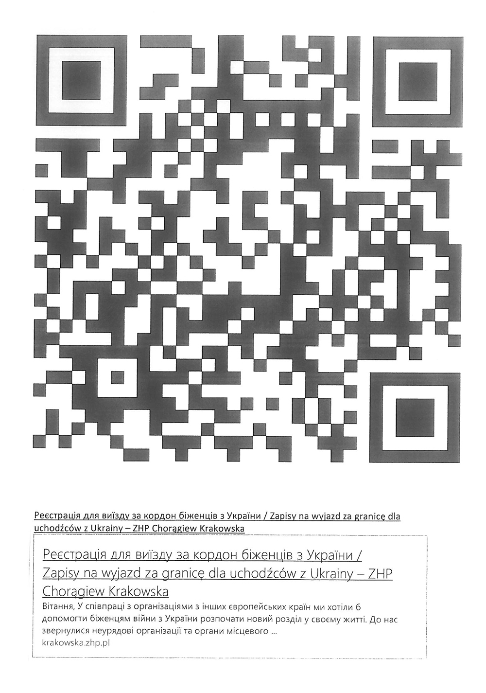 Реєстрація для виїзду за кордон біженців з України / Zapisy na wyjazd za granicę dla uchodźców z Ukrainy – ZHP Chorągiew Krakowska, za pośrednictwem której uchodźcy zainteresowani wyjazdem za granicę będą mogli zgłosić się wybierając jeden z krajów, który zgłosił ofertę pomocy.